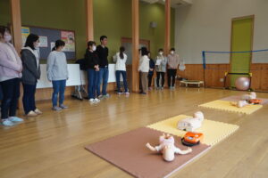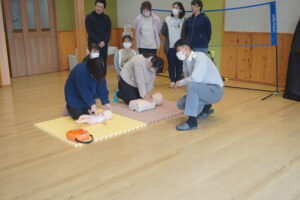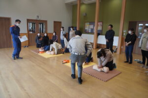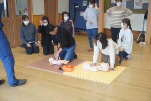 心肺蘇生や応急手当の方法を、実際に体を動かしながら学びました。